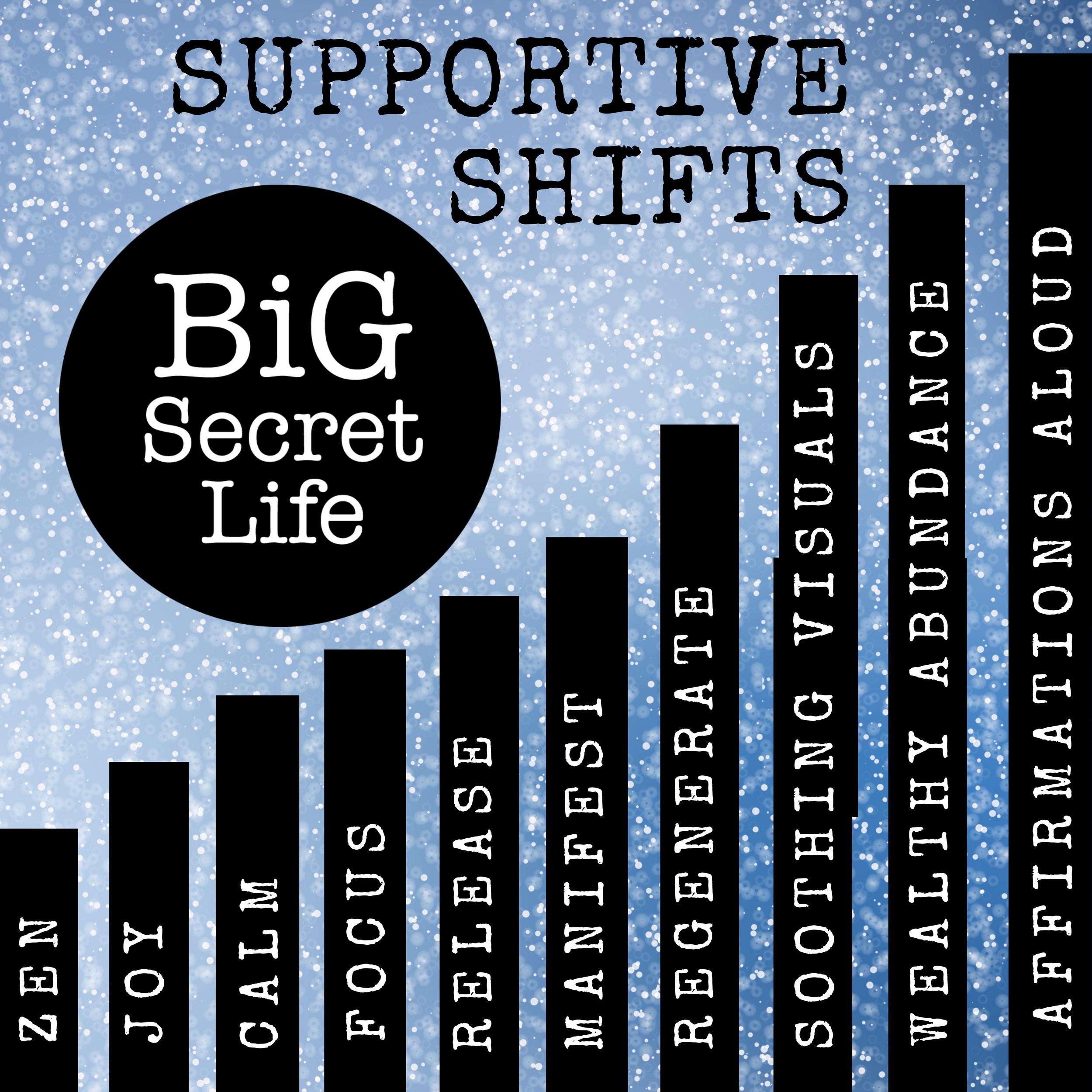→Intention based Supportive Shifts combine text with soothing visuals and/or whispered affirmations layered beneath calming soundscapes designed to set up a supportive environment for your mind.